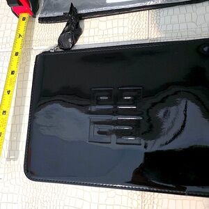 Brand New Givenchy Black Patent Zip Pouch 8 Inch x 6 Inch.