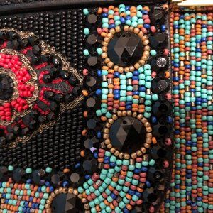 Brand New Glam Rockstuds Lock Beaded African Eyes Leather Crossbody Shoulder Bag