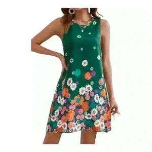 Brand New Green Floral Printed Sleeveless Round Neck Dress