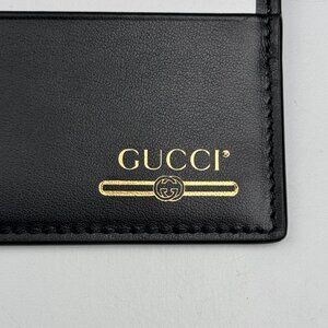 New Gucci Black & Gold Double-Sided Leather Card Holder