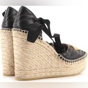 Brand New. Gucci Nappa Matelasse GG Ankle Wrap Platform Espadrille Wedges