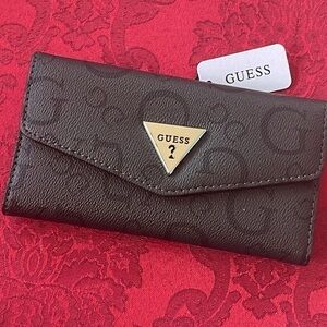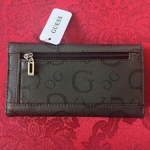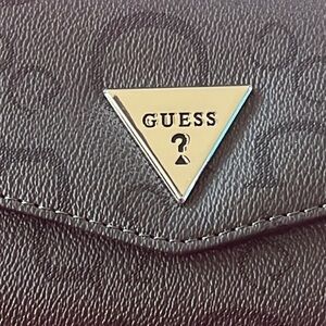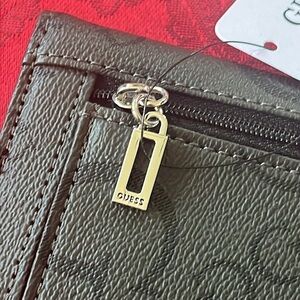 Brand New Guess Trifold Snap Wallet Coal Gray & Black w/ Silver Tone Metal Logo. Approximately 6-7/8” across, 3.75” tall. Smoky & rich-looking!