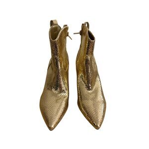 🟢Brand New Guess WGWirla Metallic Gold Closed Pointed Side Zip Ankle Boots 7
