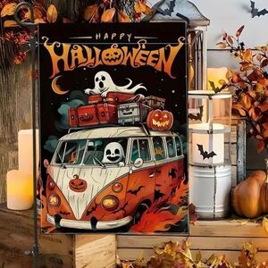 Spruce up your outdoor decor with this Brand New Halloween Hippie Van Ghost Fall Funny Graphics Garden Decoration Flag! Unique yet whimsical design for Halloween is sure to be the highlight of all your fall decor.