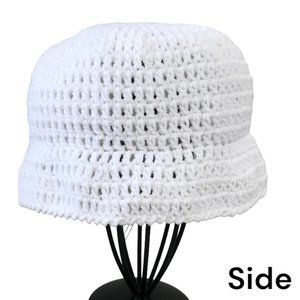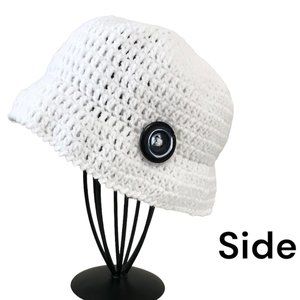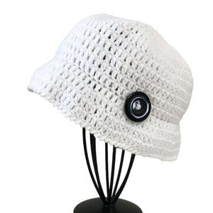 Brand New Handmade Crochet White Bucket Hat with a Nice Accent Black Button