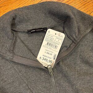 Brand New With Tags soft, heathered grey half zip. Soft, comfortable, wide bottom, smooth zipper