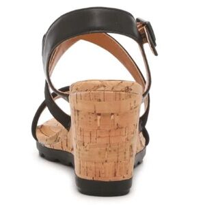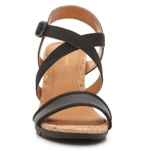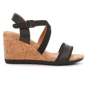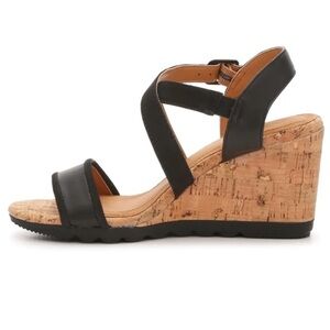 Brand New Hush Puppies Genuine Leather Black Cork Wedge Sandals Cross Strap