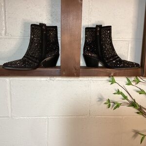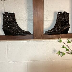 Brand New ISNOM Rhinestone Black Ankle Cowboy Boots | Cute and Comfy!