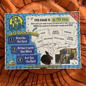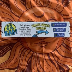 🎉 The Ultimate Party Game! 🎉 ‣ If you love charades, word guessing games and maybe even getting a little crazy with your game nights... then you're going to love It's In The Bag! it's like charades steroids! It builds upon the classic acting & phrase guessing games while adding a touch of ridiculousness to spice things up!
