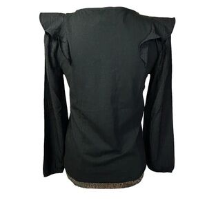 Brand New J. Crew Ruffle-Shoulder Top with Plaid Jacquard Sleeves Pullover XS