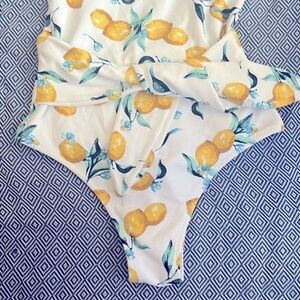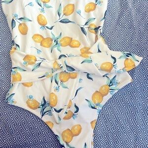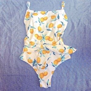 Brand New Jessica Simpson Lemons Printed Tie-Waist One-Piece Swimsuit Bra Cups