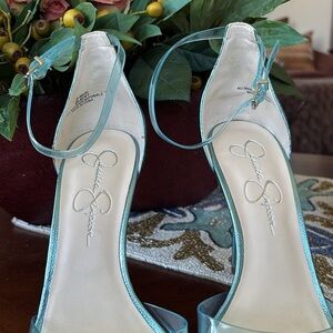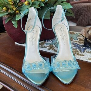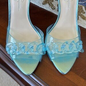 Brand New Jessica Simpson Wayri Stiletto Heels Sandals Lucite Chainlink Blue