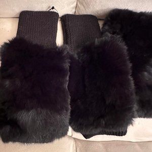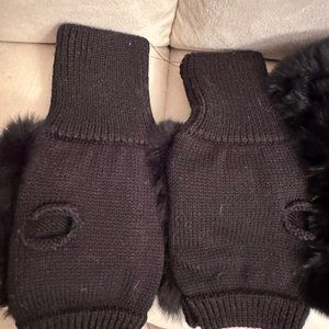 Knit Rabbit Fur Cowl & Rabbit-fur Trim Finger less Mittens In Black New with tags. MSRP $168