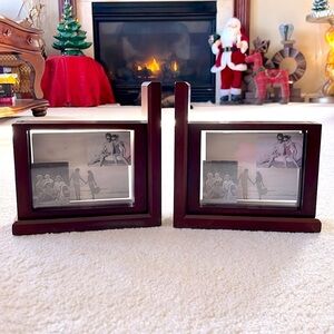 Brand New Jordan Mark Solid Wood Cherry Finish Photo Picture Frame Bookends Pair.  New in box.  Gorgeous for the home!  Makes a great wedding or housewarming gift!