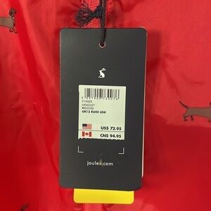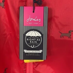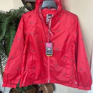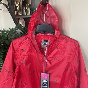 Brand New Joules Waterproof Breathable Rain Coat Zippered Jacket Red Dogs Hood. Women's size 8. So cute -- especially if you love dogs!