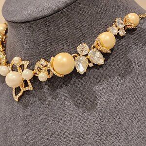 Brand New! KATE SPADE: Gold-Toned Flower| CZ|Glass|Crystal| Pearl Necklace