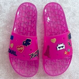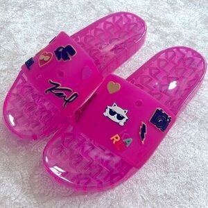 Brand New Karl Lagerfeld Paris Thea Jelly Pool Slides Embellished Pink Sandals