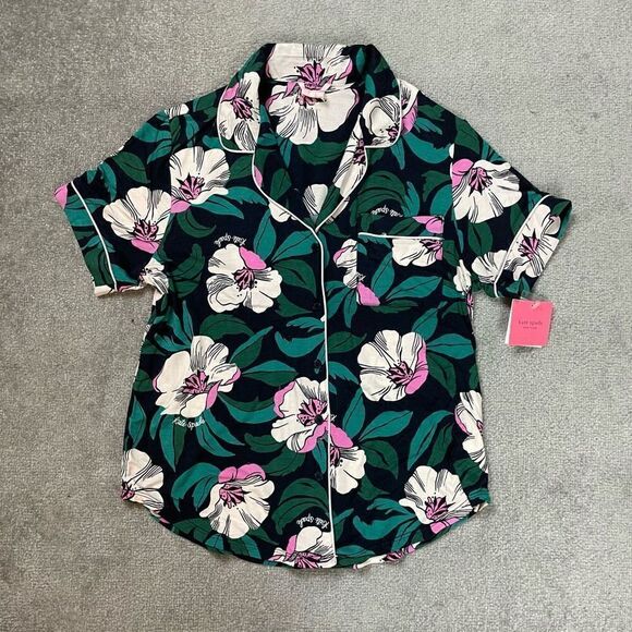 Brand New Kate Spade Women’s Medium Blue Green Floral Pajama Top Shirt Buttoned