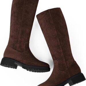 Brand New Knee High Boots for Women, 8, Chocolate Suede, Round Toe