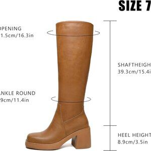 Brand New Knee High Boots for Women Square Toe Tall Chunky Heels Brown Size 9