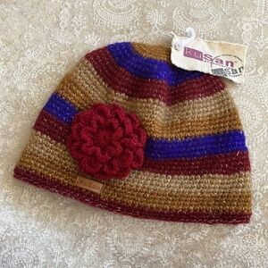 Brand New KuSan Accessories Wool Knit Beanie Hat Striped w/ Flower Handmade. Gorgeous, unique design! Beautiful shades for fall!
