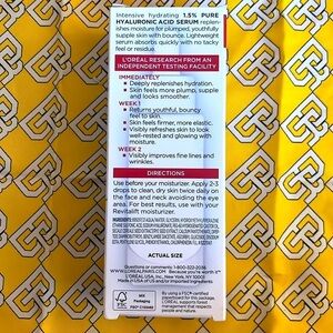 Revitalift Derm Intensives 1.5% Pure Hyaluronic Acid Serum is L'Oreal's most potent hydrating formula with the highest concentration of pure hyaluronic acid. So effective, it immediately hydrates, plumps skin in 1 week, and reduces wrinkles.