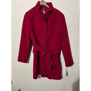 Brand New Laundry Shelli Segal Women's L Belted Full Zip Faux Wool Coat Magenta