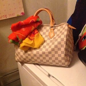 Cute lightweight infinity scarf -perfect for upcoming Spring & Summer Beautiful lively orange color. Also available in a more neutral beige pattern
