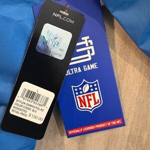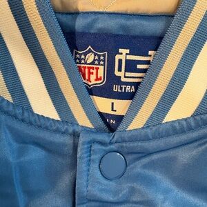 Brand New Bold blue varsity jacket with Lions logo. Features striped collar and cuffs. Ideal for fans.