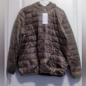 Step into the cooler seasons in style with this brand-new Locachy Women’s Ultra Lightweight Packable Full-Zip Short Hoodie Down Jacket. Perfect for layering, this olive green jacket features a convenient full-zip front, cozy hood, and practical side pockets. Designed for comfort and warmth without the bulk. Easy to pack for travel or store away. Size XL with measurements: Length - 26 inches, Sleeves - 24 inches, Armpit to armpit - 24 inches. Still has original tags – never worn!