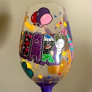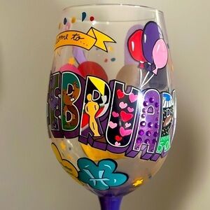 Brand New Lolita Hand-Painted 15 Oz Wine Glass February Birthday Month Colorful