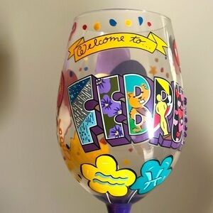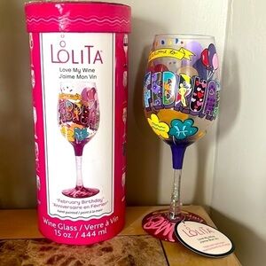 Brand New Lolita Hand-Painted 15 Oz Wine Glass February Birthday Month Colorful. Perfect gift for a February birthday! Detailed and unique!