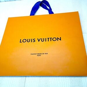 This brand new Louis Vuitton large gift tote bag is perfect for all occasions, with its classic orange color and designer theme. Measuring 15.75” x 13.40” x 6”, it is ideal for carrying as a shopping bag or for gifting items. Made from paper, this tote exudes luxury and style, making it a must-have accessory for any fashion-forward woman. The iconic Louis Vuitton branding adds a touch of sophistication to any gift or shopping trip.