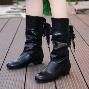 Brand New Low-Heel Round Toe Lace-Back Thermal Boots Black - Size 8