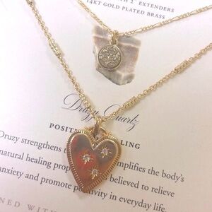 Brand New Luna Norte 14K Gold Plated Brass Druzy Quartz Two Piece Necklace Set. For positivity & healing. 16” & 17” w/ 2” Extenders. No box. Super pretty & eye-catching!