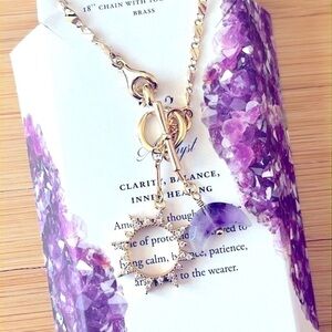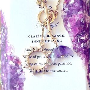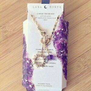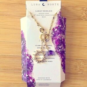 Brand New Luna Norte Genuine Amethyst Lariat Necklace Gold Tone. Gorgeous sun & crescent moon design. Toggle Clasp. 18" length. No box. Stunning!