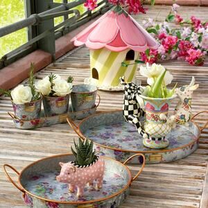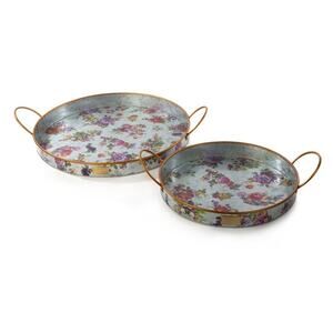 Brand New Mackenzie Childs Flower Market Galvanized Serving Trays, Set of 2