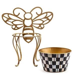 Bee inspired when you plant in our Queen Bee Plant Holder. The metal bee-shaped stand holds a removable metal pot decorated with Courtly Check®. Just add your favorite plant or faux flowers.