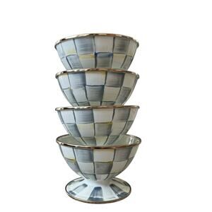 Mackenzie-Childs Sterling Check Ice Cream Dishes Set of 4