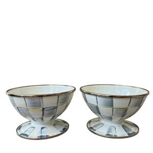 Brand New Mackenzie-Childs Sterling Check Ice Cream Dishes Set of 4