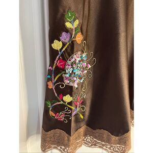 Brand New Magazine Women's Large Brown 100% Silk Embroidered BOHO Cami Camisole
