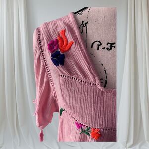 Brand New Magazine Women's Size Medium Rose Pink BOHO Embroidered Top Floral