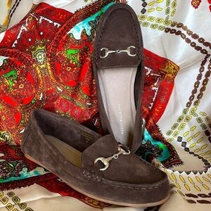 Brand New Mercer & Madison Genuine Suede Brown Flats Loafers Silver Buckle