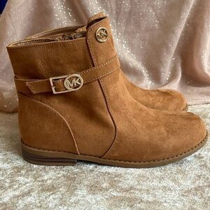 Brand New Michael Kors Ankle Bootie Zip Up Boots Round Toe Tan Gold Tone Accents. Girls size 4. No box. Great neutral shade for fall.