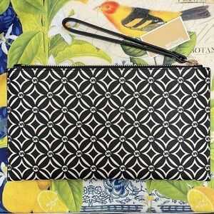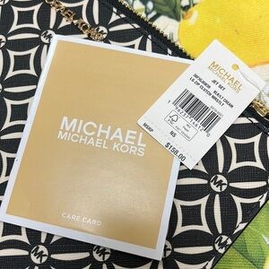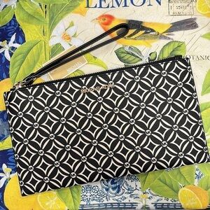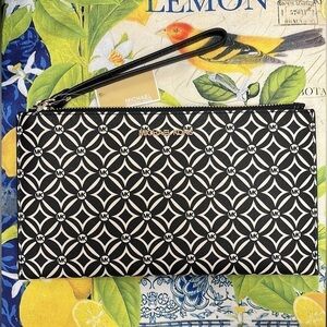 Brand New Michael Kors Black & Light Cream Diamond Large Zip Clutch Wristlet