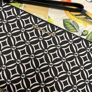 Brand New Michael Kors Black & Light Cream Diamond Large Zip Clutch Wristlet. Gorgeous classy look! Eye catching!