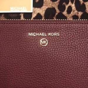 Brand New Michael Kors Genuine Leather Large Zip Clutch Wristlet in Merlot. Gorgeous for fall and winter!