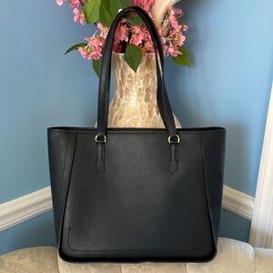 Brand New Michael Kors Genuine Leather Zippered Sylvia Tote Purse Black w/ Gold