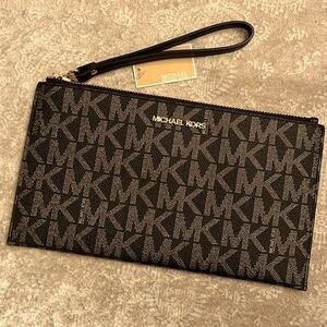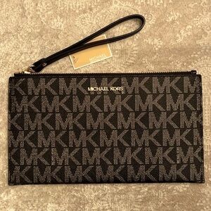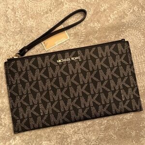 Brand New Michael Kors Large Zippered Clutch Wristlet Black & Gold Jet Set. Absolutely gorgeous! Makes a great gift for her!