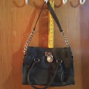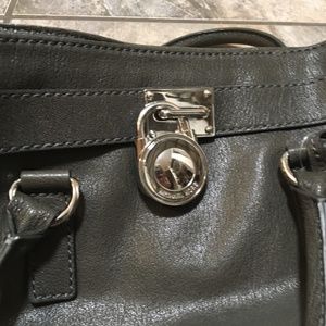 Brand New! Michael Kors Leather Satchel Purse Grey w/ Silver Chain Detail